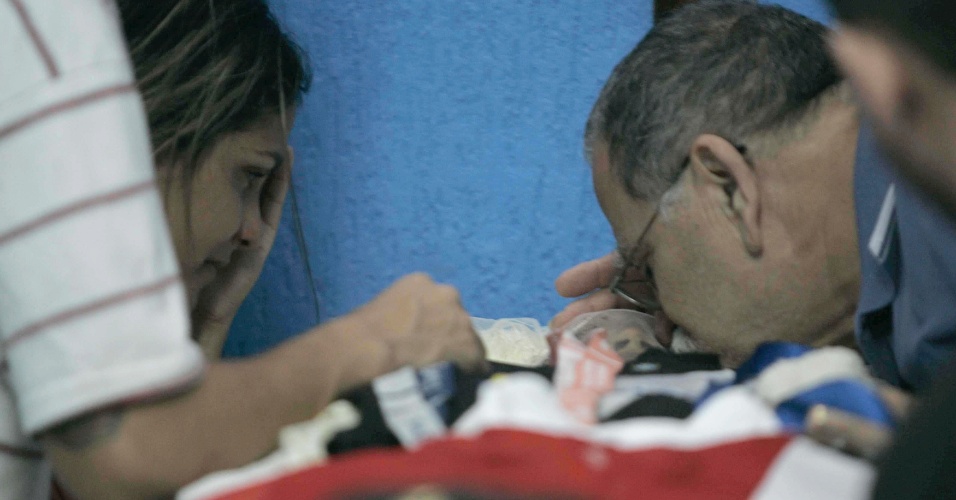 1.nov.2013 - Familiares velam o menino Kayo da Silva Costa, de 8 anos, na capela de Moça Bonita, em Bangu, zona oeste do Rio de Janeiro. O menino foi morto na noite desta quinta-feira (31), baleado na cabeça durante troca de tiros entre policiais e bandidos em frente ao fórum de Bangu Alessandro Costa/Agência O Dia