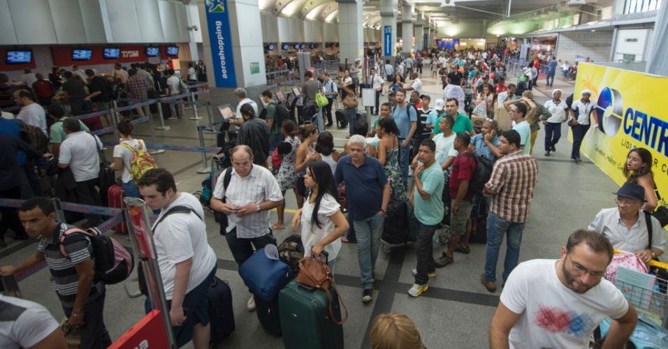Passageiros da companhia aérea enfrentaram problemas desde a noite de sexta-feira (6) e todo o dia de hoje para embarcar no aeroporto Santos Dumont, no Rio, onde foram registrados atrasos e cancelamentos de voos. Ontem, a fila para despachar as malas ultrapassou em 200 metros a delimitação dos guichês.