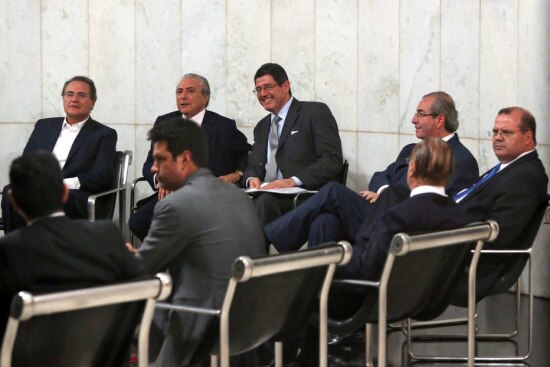 O jantar na casa de Temer reuniu, além de Levy e de Mercadante, Nelson Barbosa (Planejamento), Alexandre Tombini (Banco Central), e os ministros filiados ao PMDB: Kátia Abreu (Agricultura), Edinho Araújo (Portos), Eliseu Padilha (Aviação Civil), Vinícius Lages (Turismo), Eduardo Braga (Minas e Energia), Helder Barbalho (Pesca) e Mangabeira Unger (Assuntos Estratégicos). Também participaram as principais lideranças da legenda no Congresso, como os presidentes do Senado, Renan Calheiros (AL), e da Câmara, Eduardo Cunha (RJ), além do ex-presidente José Sarney (MA) e do ex-presidente da Câmara Henrique Eduardo Alves (RN).