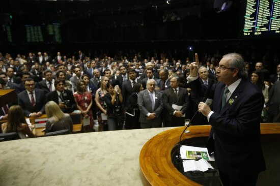 Eduardo Cunha (PMDB-RJ) em discurso na tribuna do plenário da Câmara; o deputado foi eleito presidente da casa com 267 votos