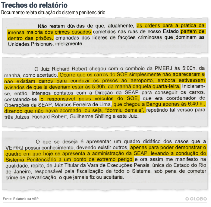 Um dos exemplos destacados para mostrar as falhas da Seap ocorreu no dia 22 de junho, quando a VEP, o Ministério Público e a Polícia Militar montaram uma operação, marcada inicialmente para as 5h, para transferir a presídios federais, fora do estado, 15 presos que estariam envolvidos na fuga de Fat Family.