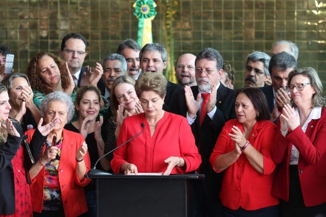 A presidente afastada Dilma Rousseff faz declaração após o Senado aprovar seu impechment (Foto: André Coelho / Agência O Globo)