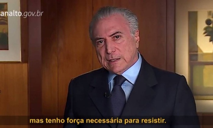 Em vídeo gravado antes de ir à China, Michel Temer afirmou que 'querem parar o Brasil', mas que ele tem a 'força necessária para resistir' - Reprodução